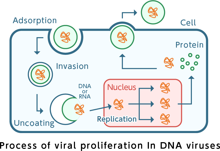 Viruses utilize various host factors expressed in host cells when they replicate themselves. KinoPharma works towards the development of new antivirals with a novel concept, targeting host factors rather than virus factors.